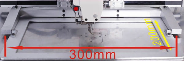 Computer Controlled Pattern Sewing Machine 3020 is suitable for many kinds of decorating and cascading sewing on shoes. Large labels and emblems, sewing of two or more pieces of small labels and emblems at one time, and the shape-tacking of bags and shoes.